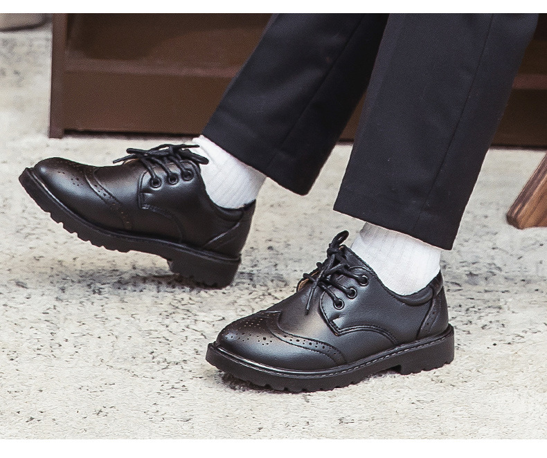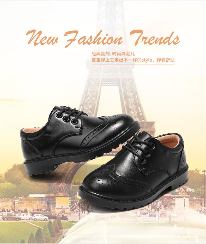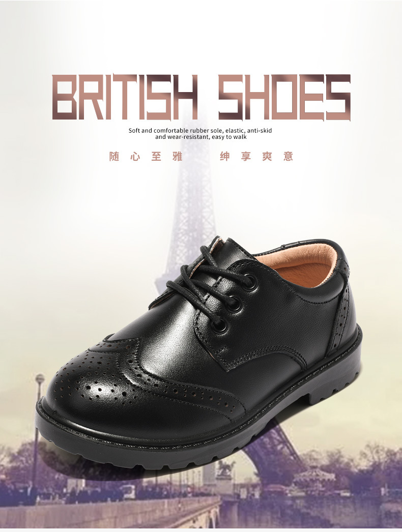 子供の革靴学院の柔らかい底の中の大きい子供の新型の春秋は黒色の小さい男の子の英倫の夏の学生の男の子の靴を演出します。