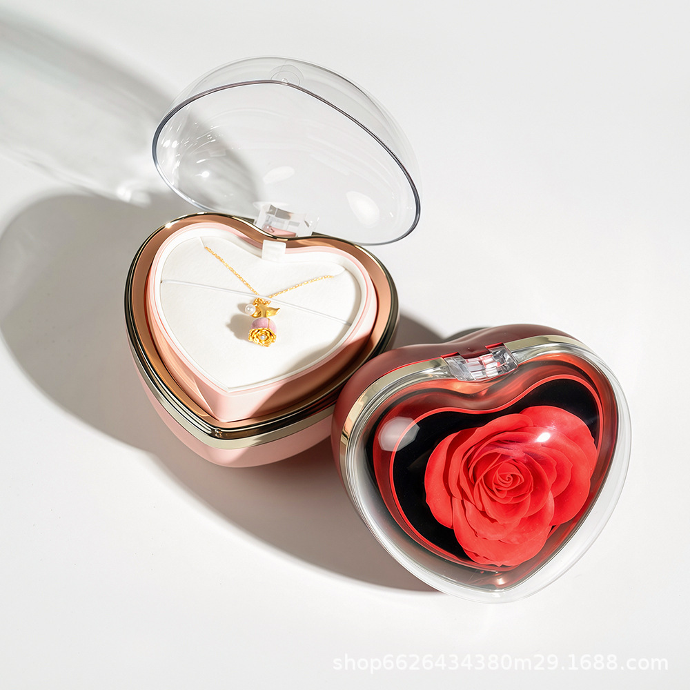 中国のバレンタインデー 520 ラブシェイプローズ回転不滅の花ギフトボックスラブリングペンダントネックレスボックス