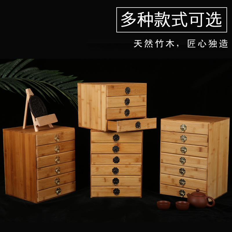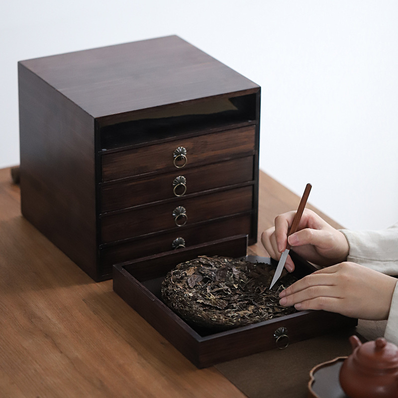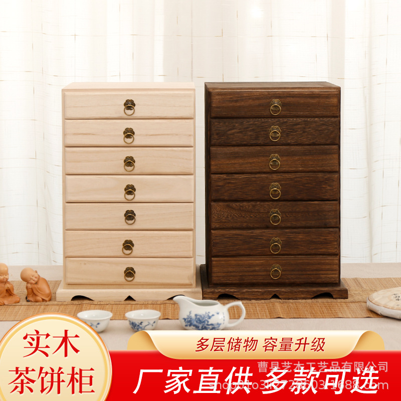 プーアル茶収納ケース分茶盤家庭用白茶餅茶箱多層実木竹製引き出しプーアル棚