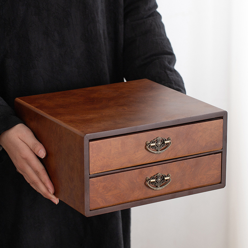 実木引き出し式整理収納ボックス家庭用デスクトップ収納キャビネット化粧品アクセサリーボックスオフィスファイル収納ボックス