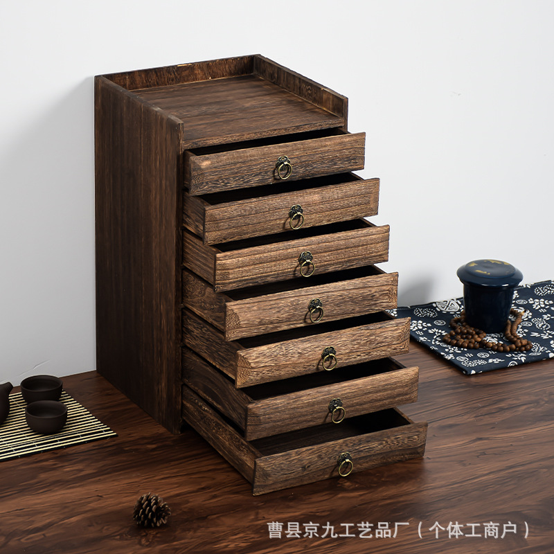 無垢材多層収納ボックス家庭用デスクトップ引き出し式収納キャビネット化粧品ジュエリー収納ボックスカスタム防塵カバー