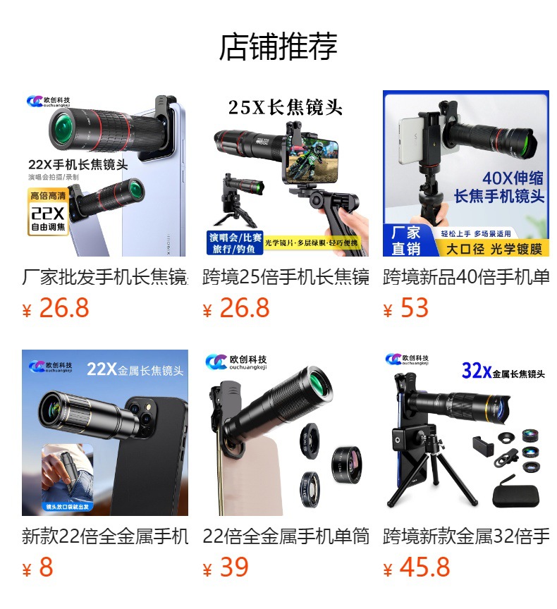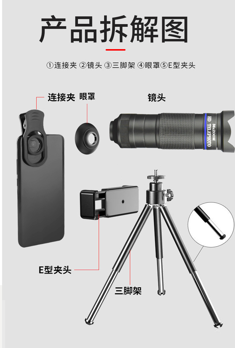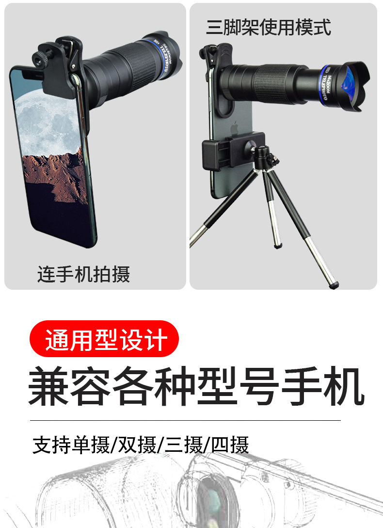 外贸批发22/32倍全金属手机望4K高清自由变焦外置拍照长焦镜头