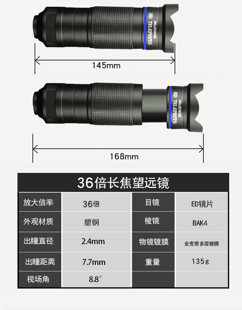 36倍手机长焦镜头演唱会拍摄神器大视野钓鱼直播高清单筒望远镜