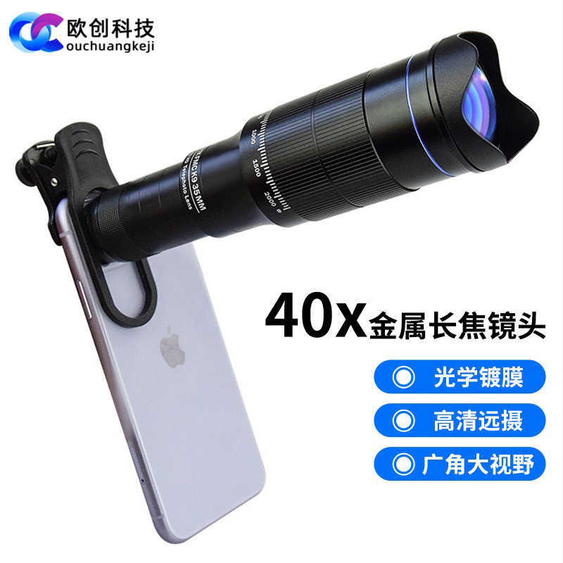新型40倍携帯電話用望遠レンズ、高倍率ポータブル単眼鏡、外付け高解像度フルスクリーン撮影レンズ