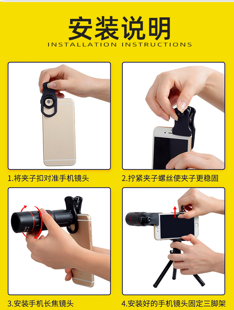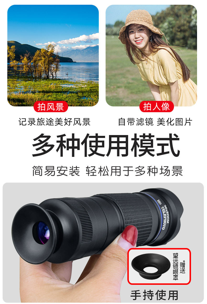 手机长焦外置镜头演唱会22倍高清望远镜户外手机拍照单筒金属长焦