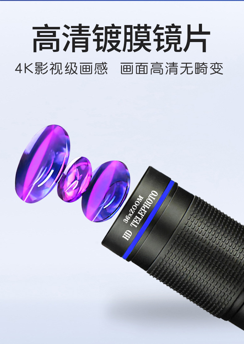 国境を越えた卸売 36 倍携帯電話望遠レンズ屋外 HD ハイパワー大視野釣りライブブロードキャスト単眼望遠鏡