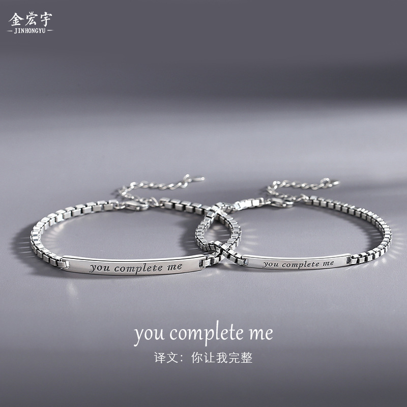 韓国スタイル ins スタイルカップルブレスレット 925 スターリングシルバーニッチ幾何学的なレターボックスブレスレットクリエイティブハンドジュエリー中国のバレンタインデーのギフト