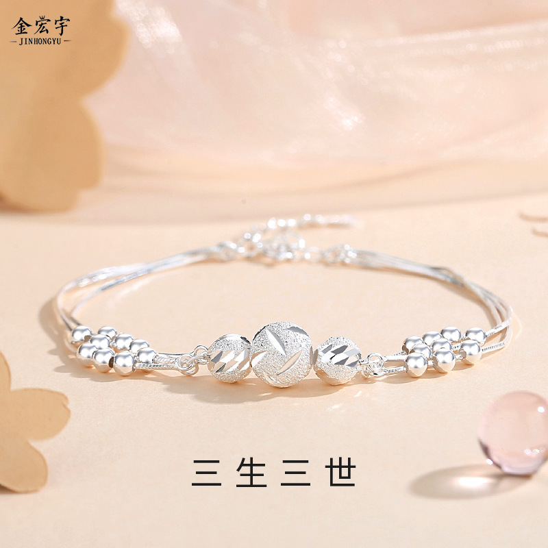 三生三世のブレスレットの女性990純銀の軽豪華な大衆の設計の娘の蜜の手の串のネットの赤いinsの百合の文芸の手の装飾