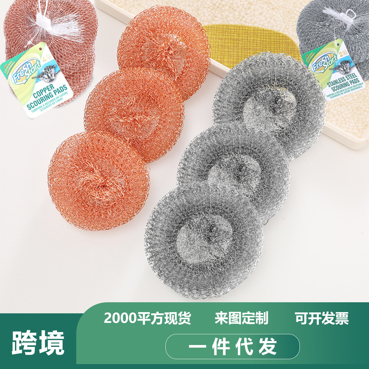 家庭用銅線クリーニングボール、キッチン掃除用、糸が抜けない、食器洗い、鍋拭き、ステンレス製の鍋洗いブラシ、スチールワイヤーボールブラシ
