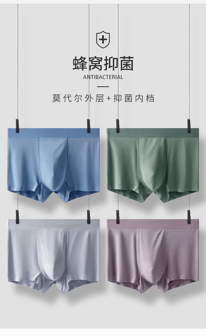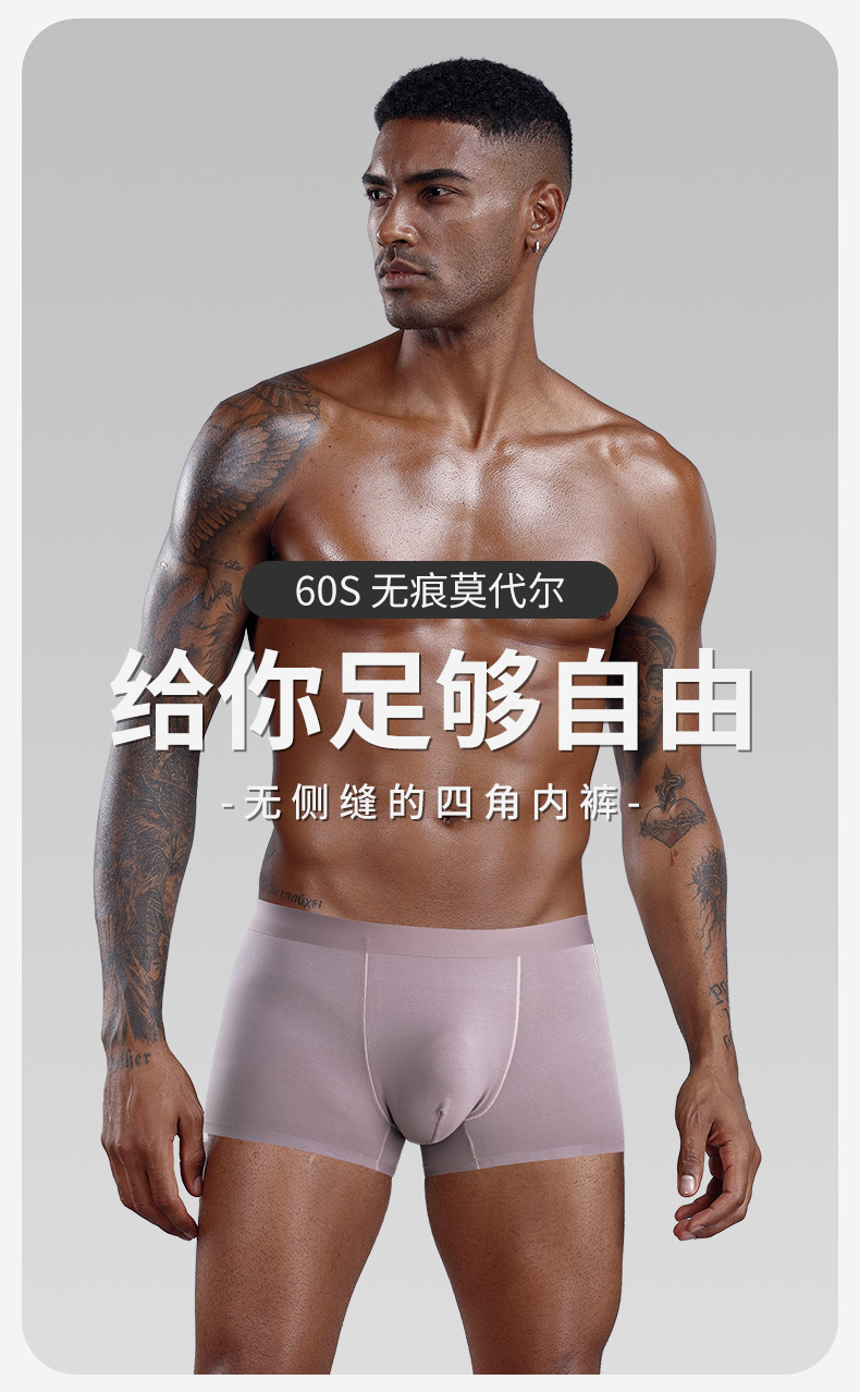 60本の蘭精モーダルパンツ男性中腰無痕抗菌通気性男性下着モーダルフラットパンツ卸売り