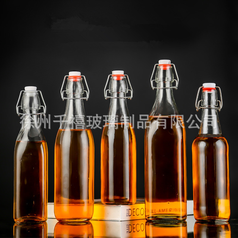 透明な正方形の円形の音楽ボタンのボタンの泡の瓶のガラスの酵素の瓶のジュースの飲み物の牛乳の瓶の空の瓶は蓋があります。