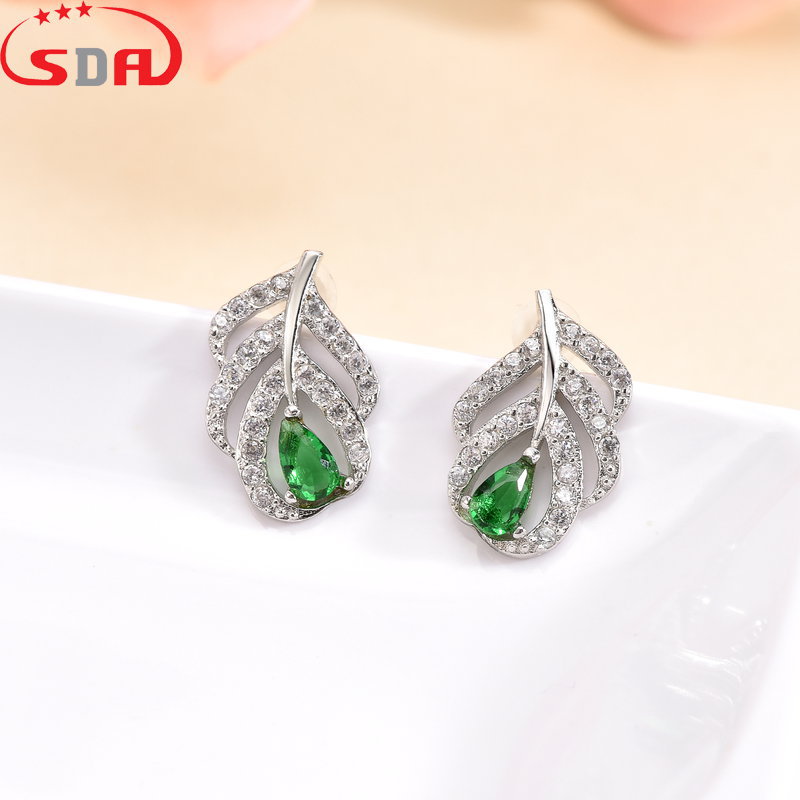 Sda 925銀の葉のジルコンの象眼アクセサリーの韓国版のファッションの耳飾りの生放送の商品の供給源のメーカーの卸売り
