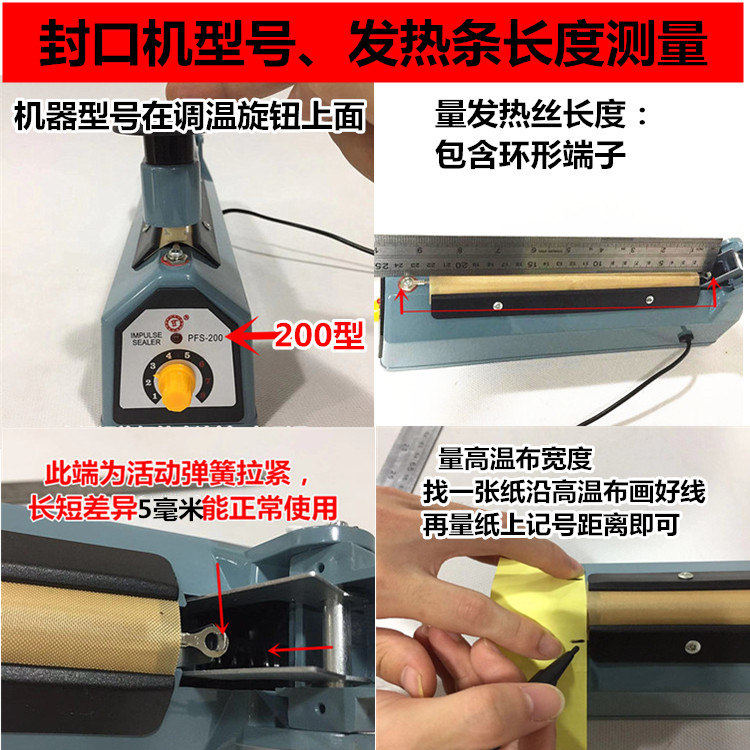 拍时留言加热条的总长度(包括两端扣)。不留言默认发手压封口机的标准尺寸