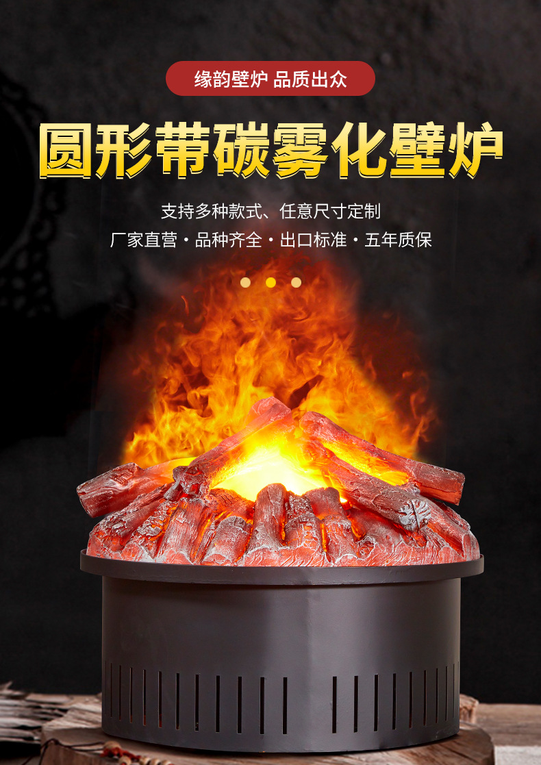 3Dヨーロピアンスタイル噴霧式暖炉装飾埋め込み型円形模擬炎加湿器別荘庭焚き火炉電子