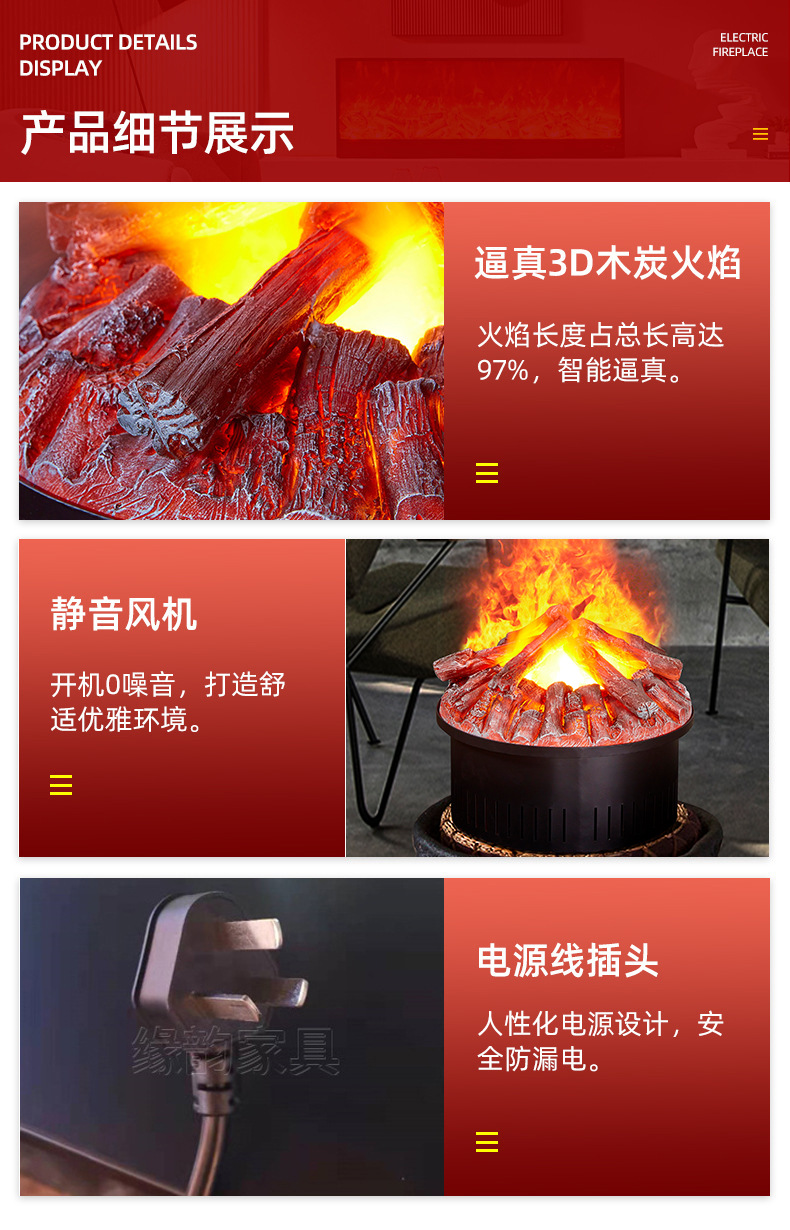 電子暖炉装飾暖炉芯発光装飾品家庭用炎インターネット有名人背景壁暖炉装飾室内暖房