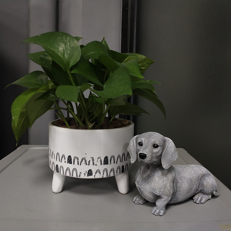 越境創意可愛い擬似ソーセージ犬置物アウトドアガーデン芝生飾り子犬樹脂工芸品