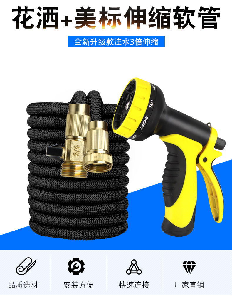 メーカー直供合金美標3倍伸縮管tpeマジック水管家庭用洗車ガーデン注湯ノズルセット