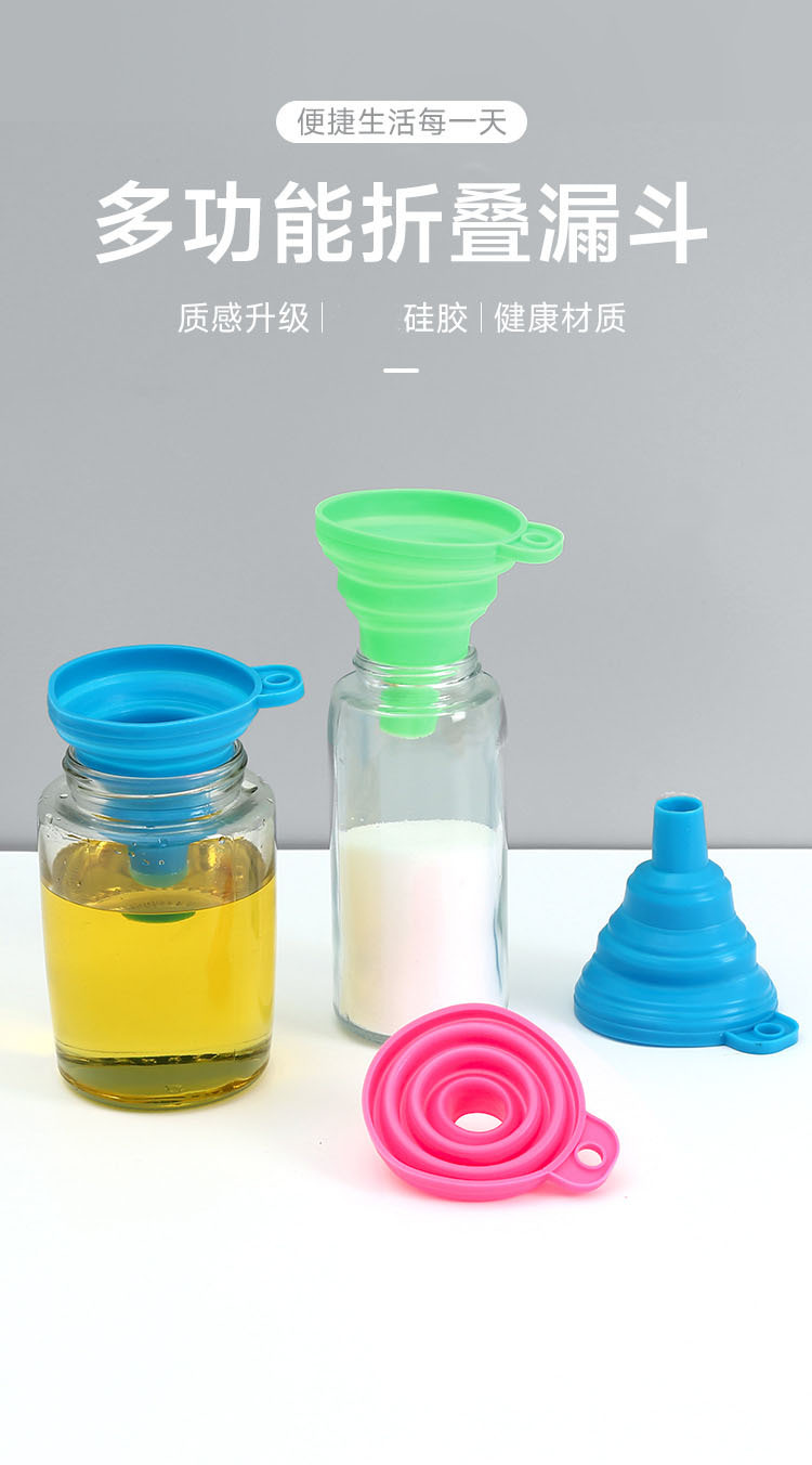 シリカゲル折り畳み漏斗家庭用食品級シリカゲル折り畳み伸縮長首液体分注小漏斗卸売り