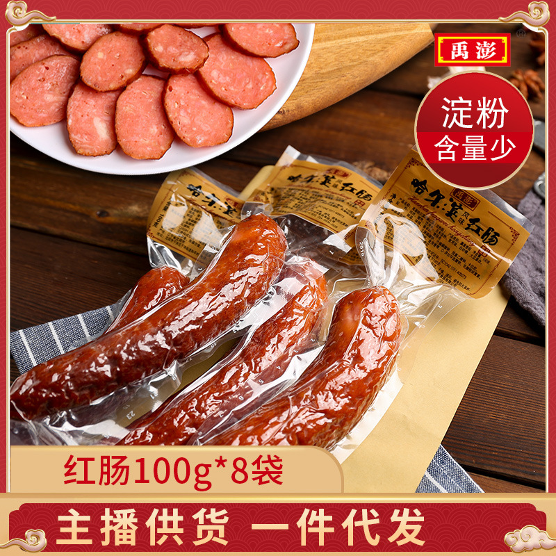 禹はハルビンの赤い腸の木炭の焼きソーセージのおつまみの熟食の肉類の間食を生放送して商品を持って代理を代行します。