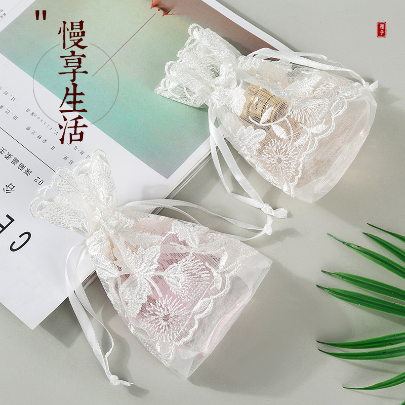 クリエイティブな新作白いガーゼ巾着袋、フリル付きクリエイティブ巾着袋、メッシュジュエリーギフト収納袋、石鹸包装