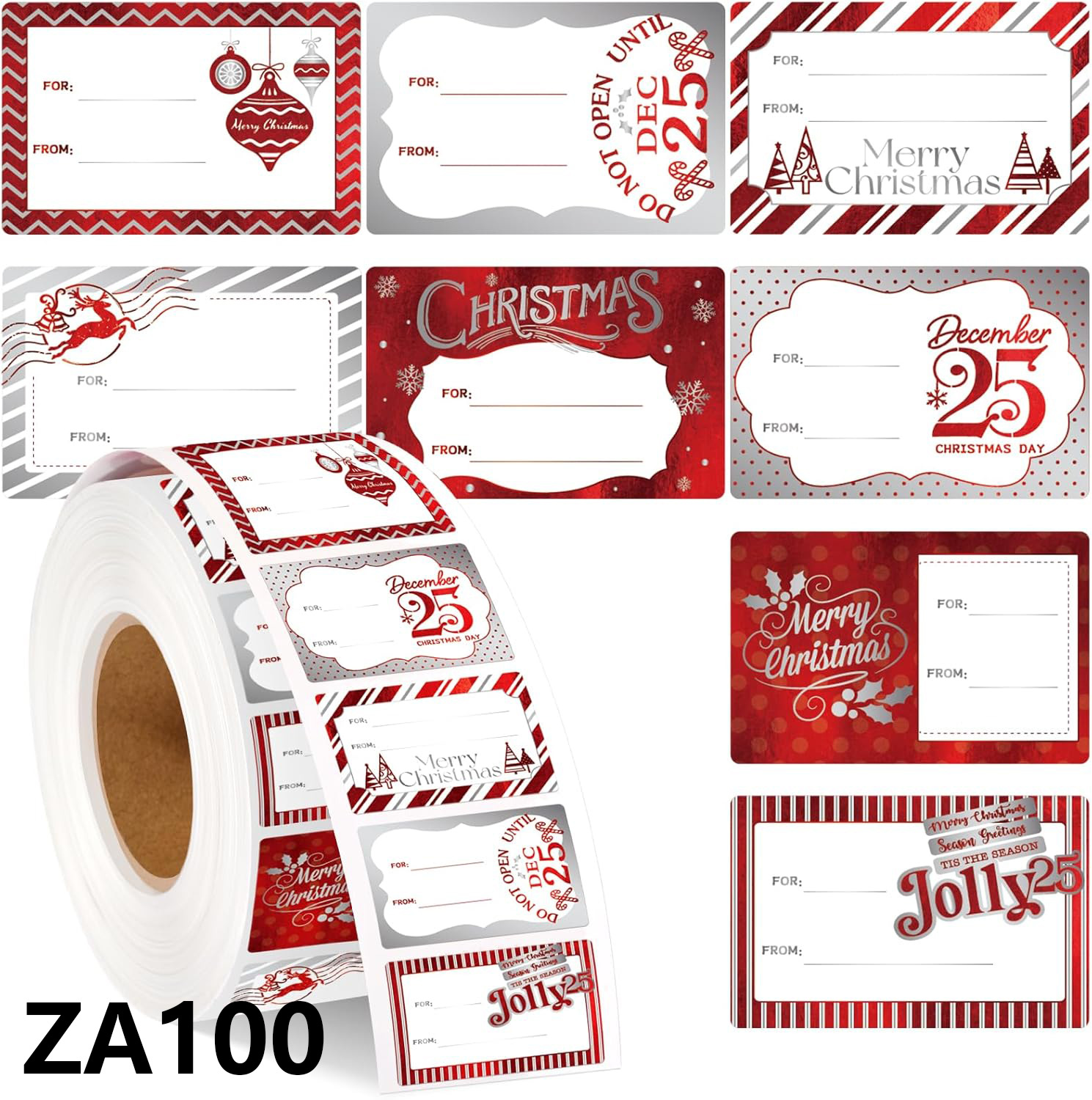 300 個クリスマスギフトタグステッカー自己粘着ギフトタグ、レッドシルバー箔クリスマスホリデーギフトタグ用
