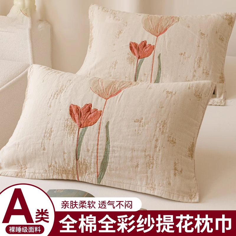 純綿枕巾メーカー直供新型レトロ潮吸汗枕巾五層ガーゼ綿通気枕巾卸売り