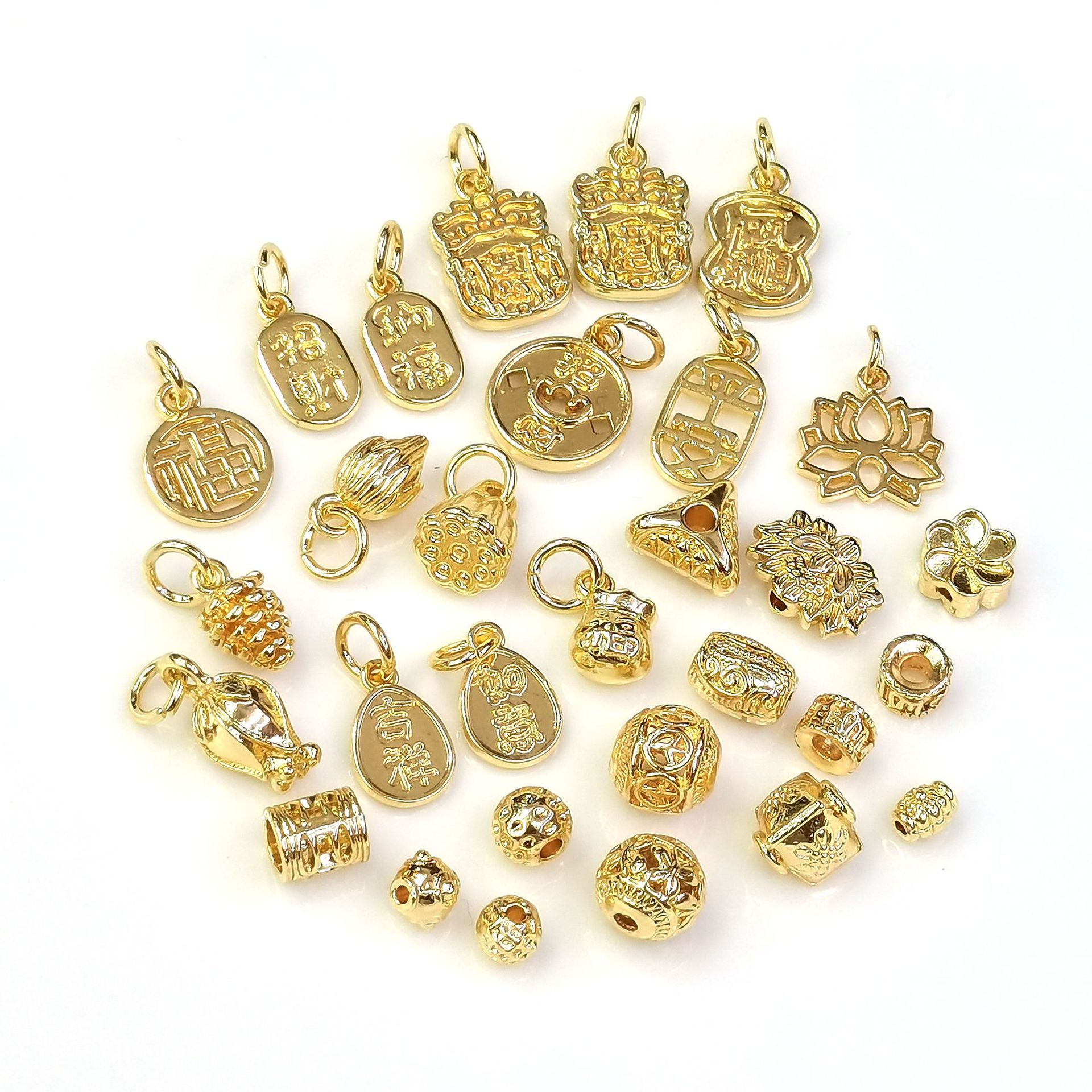 14k包金保色輸送珠招財納福吉祥如意吊牌diy手作り隔珠アクセサリー部品