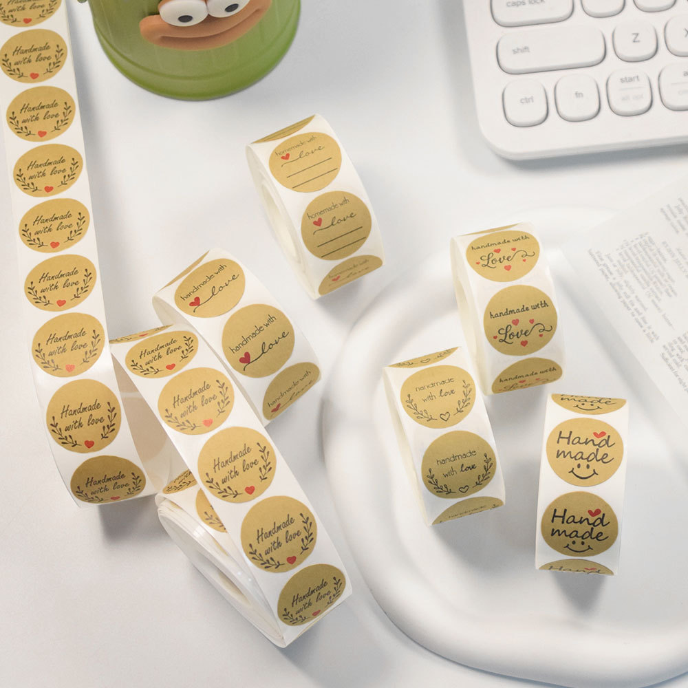 クロスボーダー起爆天然クラフト紙円形不乾性粘着ラベル手作りありがとうカスタムラベル