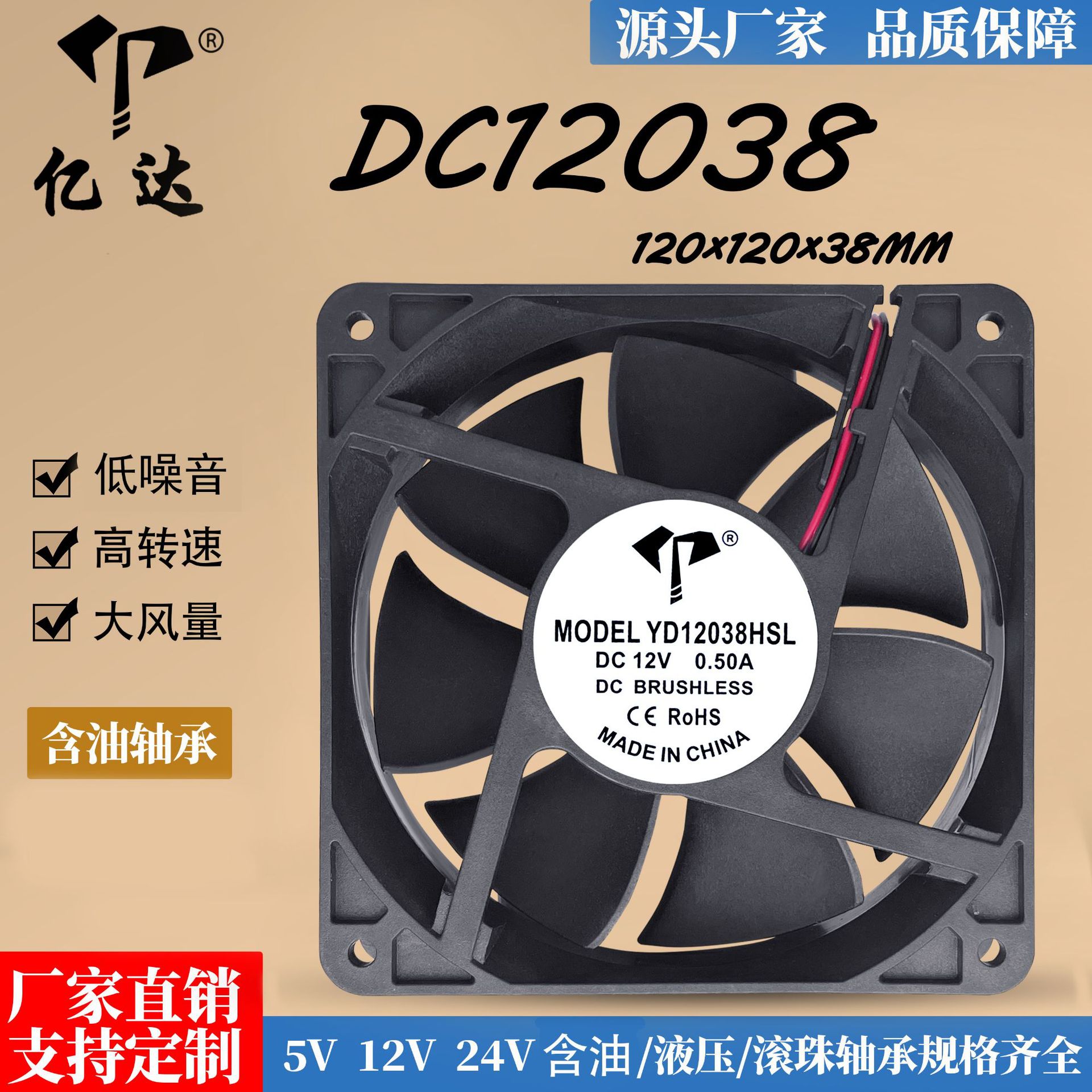億達12025含油5v12v24vルータコンピュータケース電源静音12cm工業放熱ファン