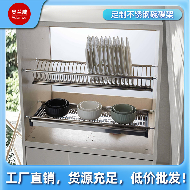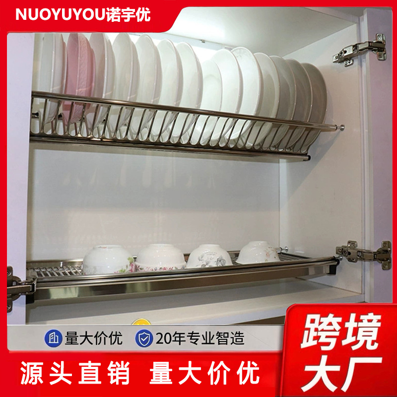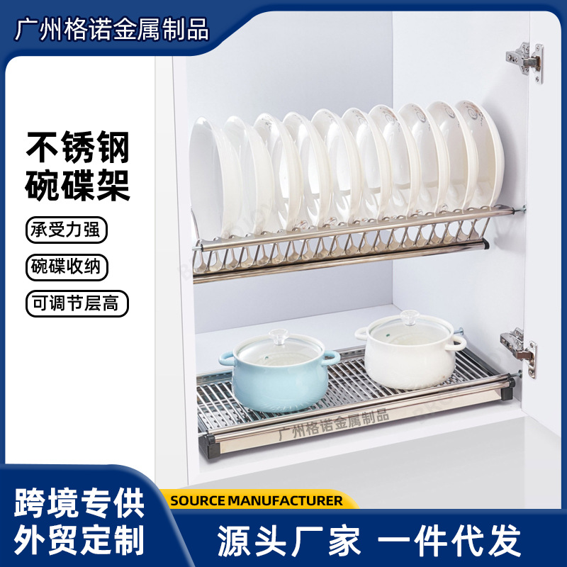 跨境304不锈钢橱柜双层碗盘沥水架厨房吊柜碗碟架橱房碗架工厂