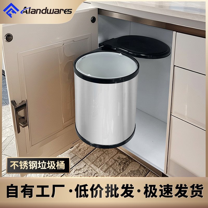 实力工厂201不锈钢嵌入内旋垃圾桶厨房隐藏式塑料收纳柜内垃圾桶
