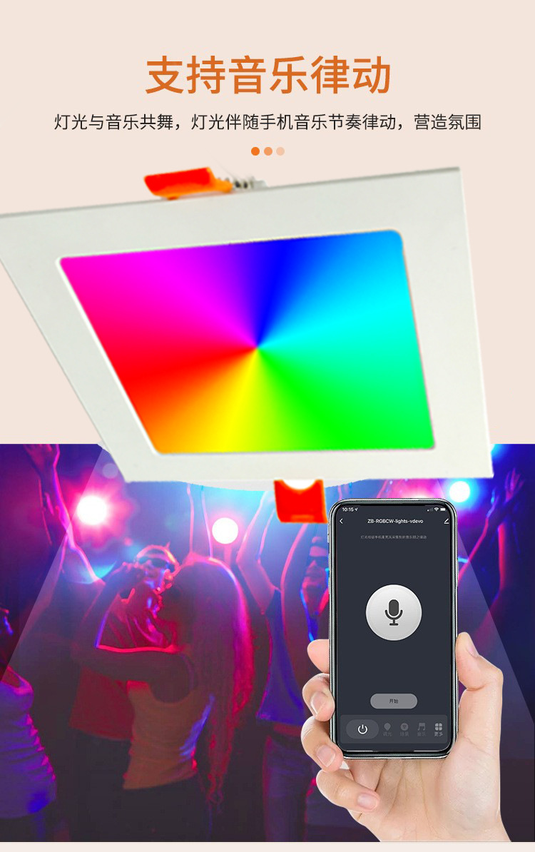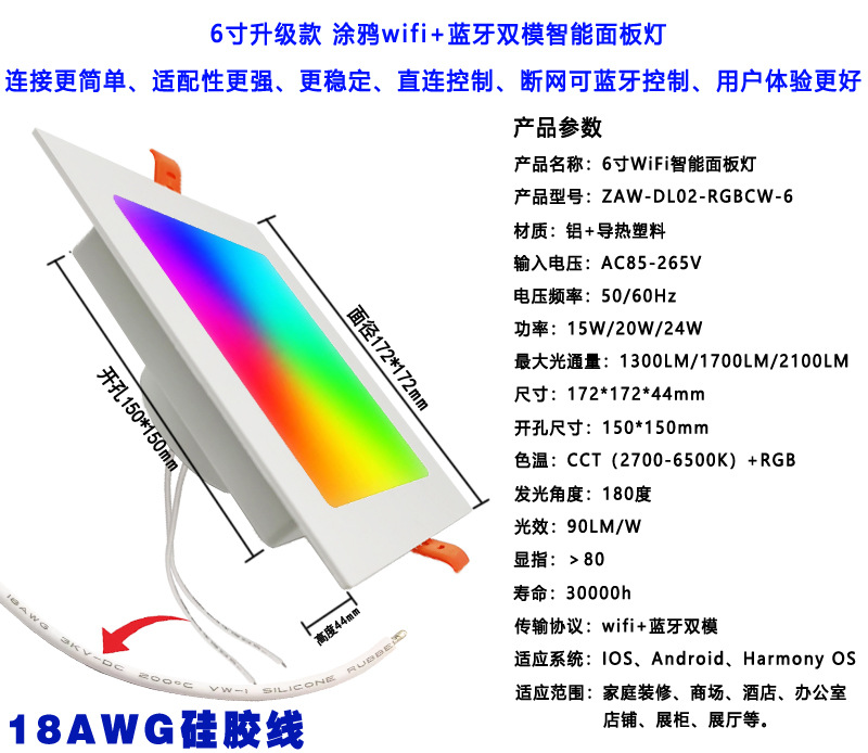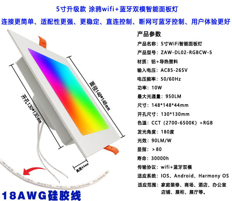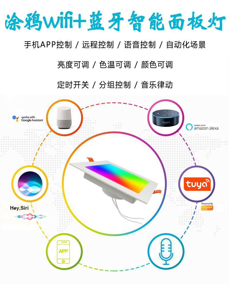 リモートコントロール音声コントロール正方形埋め込み型 5inch 6inch パネル Tuya zigbee スマートパネルライト