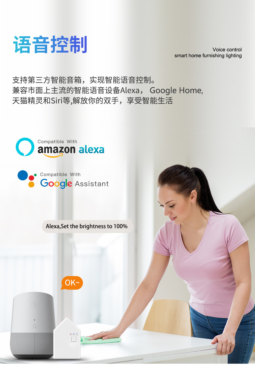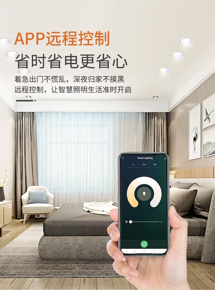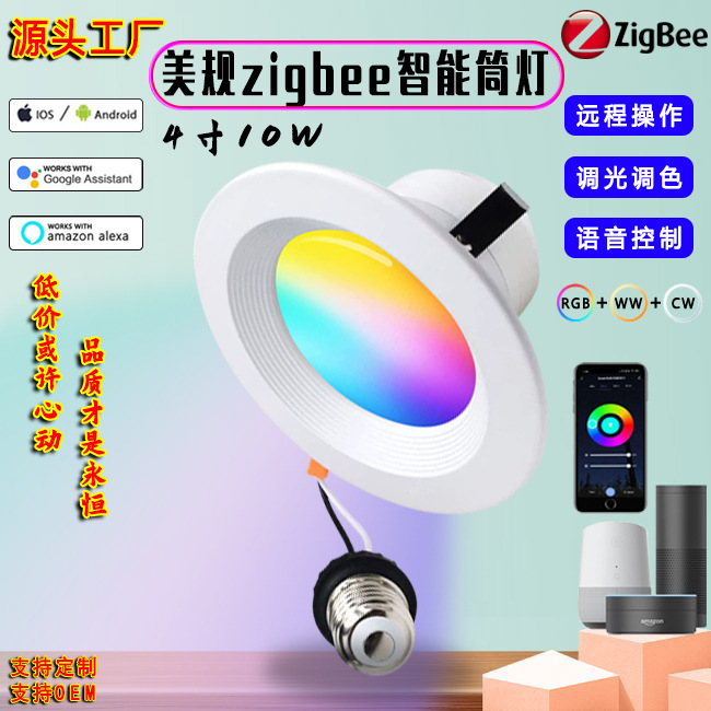 厂家直销跨境爆款语音控制远程调光调色涂鸦zigbee防眩智能筒灯
