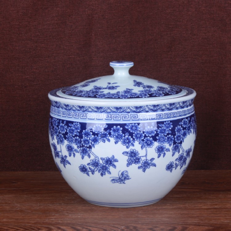景徳鎮の陶磁器の米のかめの米の桶の青と花の磁器の貯蔵の缶の台所の漬物のかめの肉のかめの雑穀の缶は蓋の容器があります。