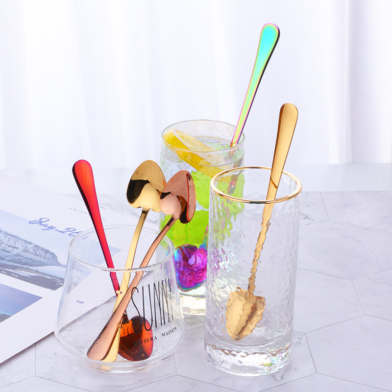 304ステンレスハート型デザートスプーンクリエイティブカラー多規格ハート型小スプーン家庭用ティースプーン攪拌スプーン