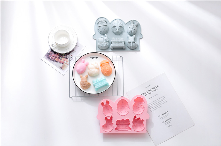 スポットイースターウサギの卵焼きシリコン金型6格卵万クリスマス祝日焼きケーキ金型