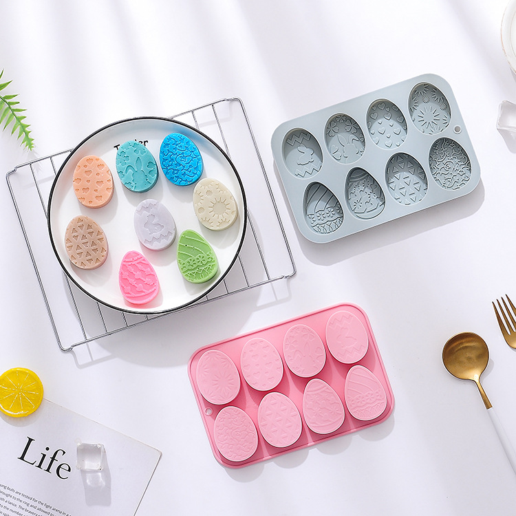 スポット8連8種類の異なるイースターエッグシリコン金型チョコレート焙煎ツール焼き皿ケーキ金型