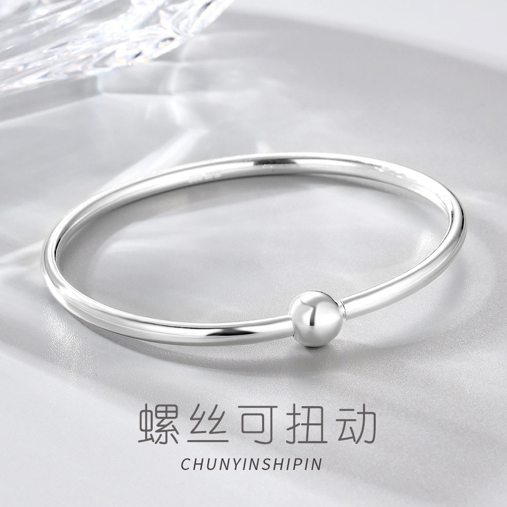 Ins小衆シンプル風アクセサリーs925純銀素輪ねじ手環気質個性ファッション玉ブレスレット女