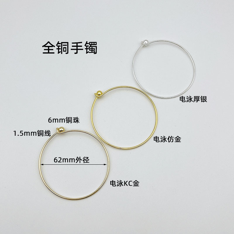 全銅ボールブレスレットdiy保色銅アクセサリー開口リング電気泳動メッキ銅線部品1.5x60mm