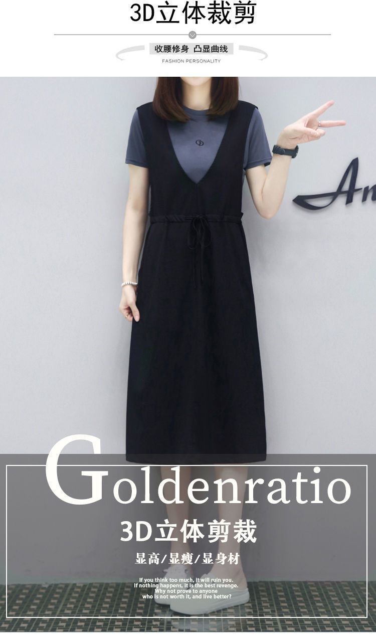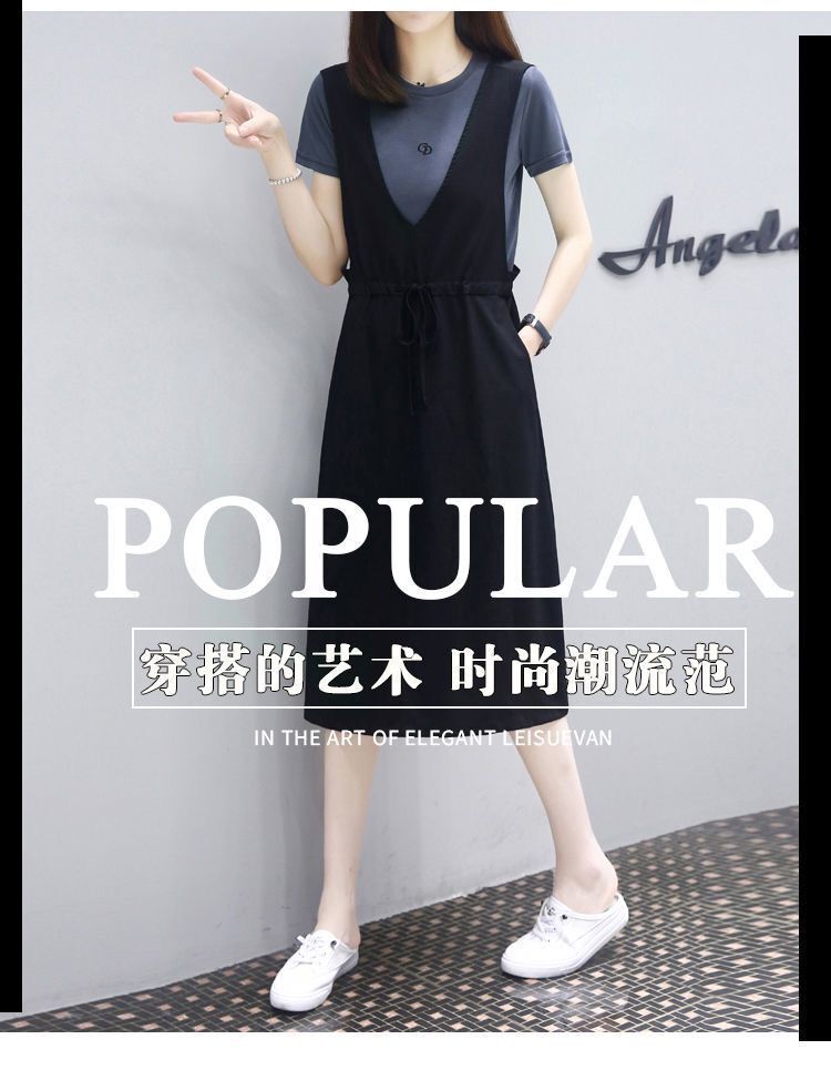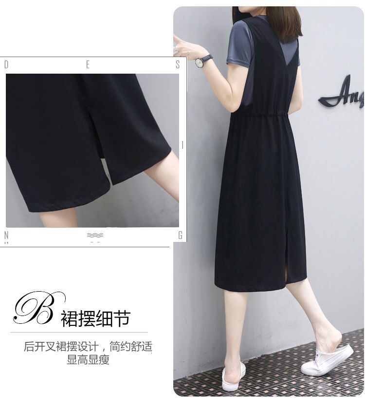 ヨーロッパステーション 2025 夏の新スタイルミッドレングスルーズスリム偽ツーピースサスペンダースカートカジュアルドレス女性のための