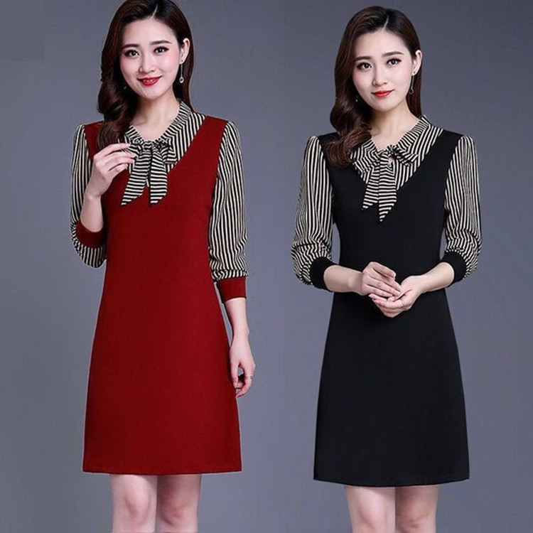 春秋の新型の中高年の中で長い長袖は底のワンピースを打って身を修めてやせているファッションのお母さんの服を現します。