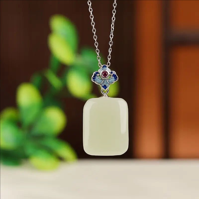 中国風の古い北京焼青純銀の金焼青玉蘭と田玉ペンダント如意ネックレス復古気質