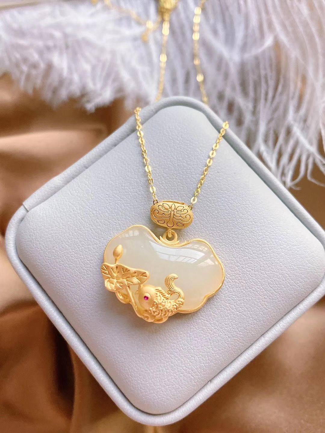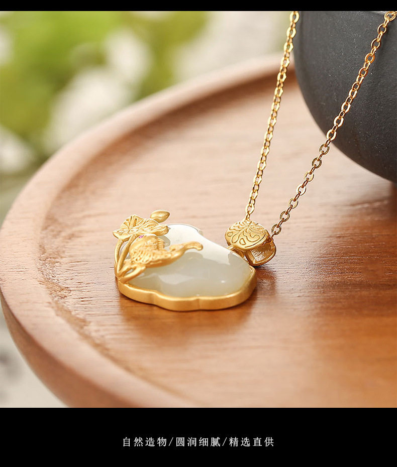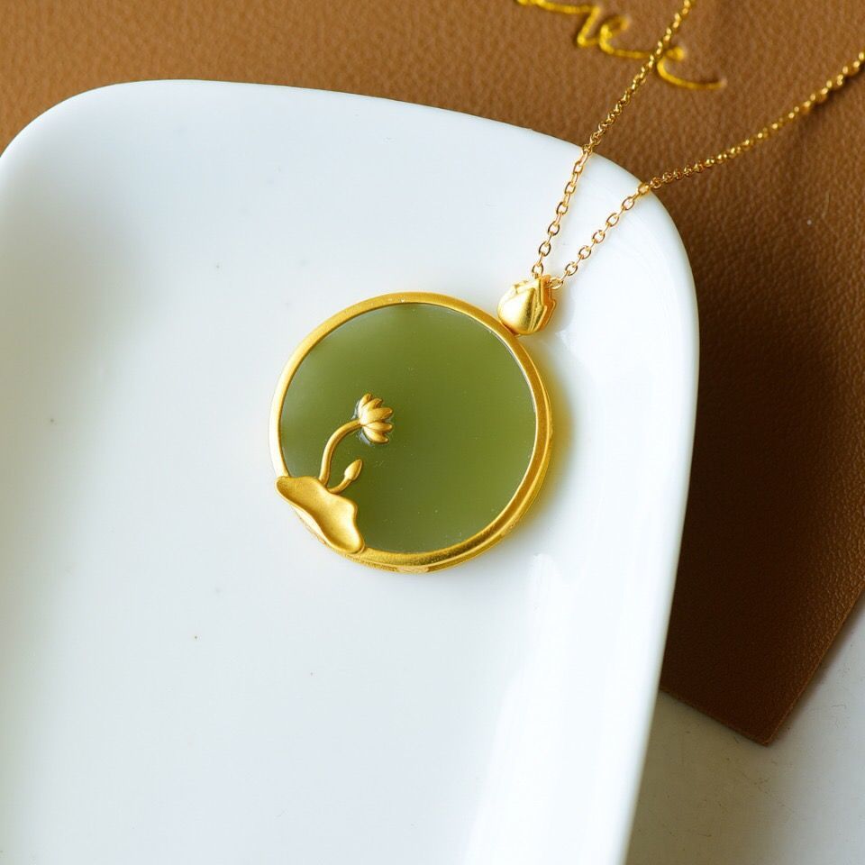 金翡翠出会い賀天碧玉ペンダントライト高級ゴールドメッキシックな蓮のエレガントなファッション気質シンプルなネックレスレディース