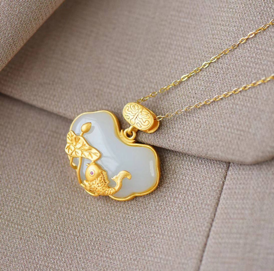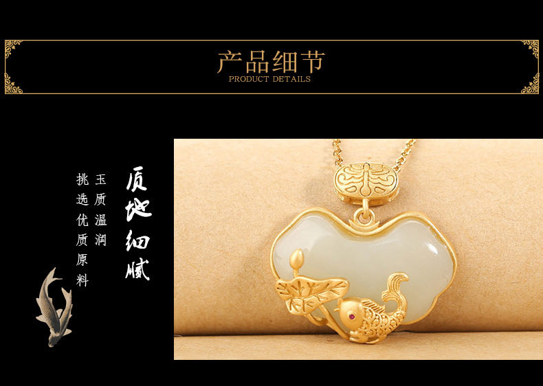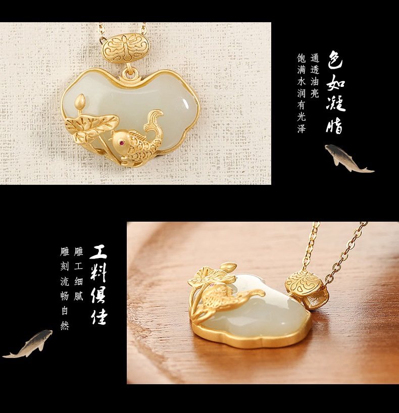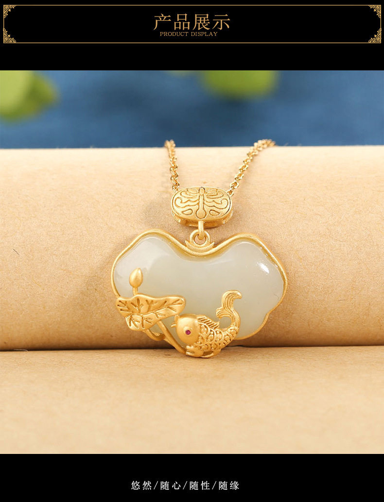 天然和田玉鯉蓮ペンダント女性レトロアクセサリー年魚和田玉s925銀ネックレス女性モデル