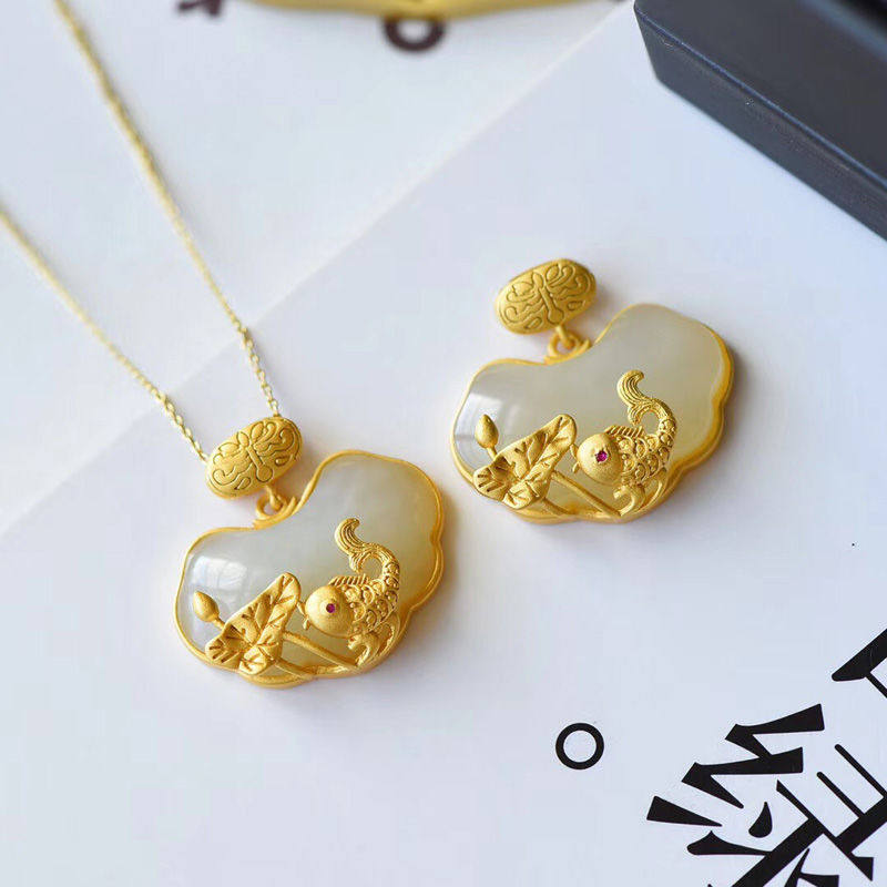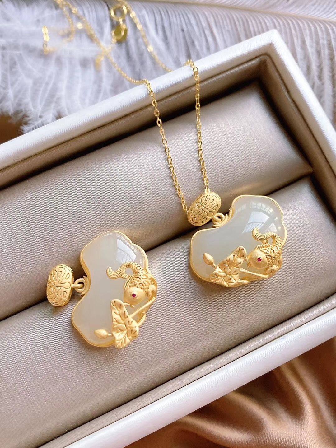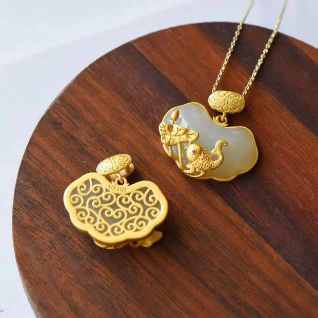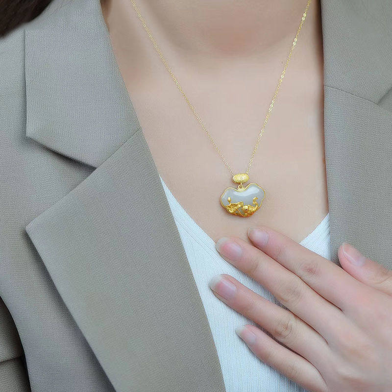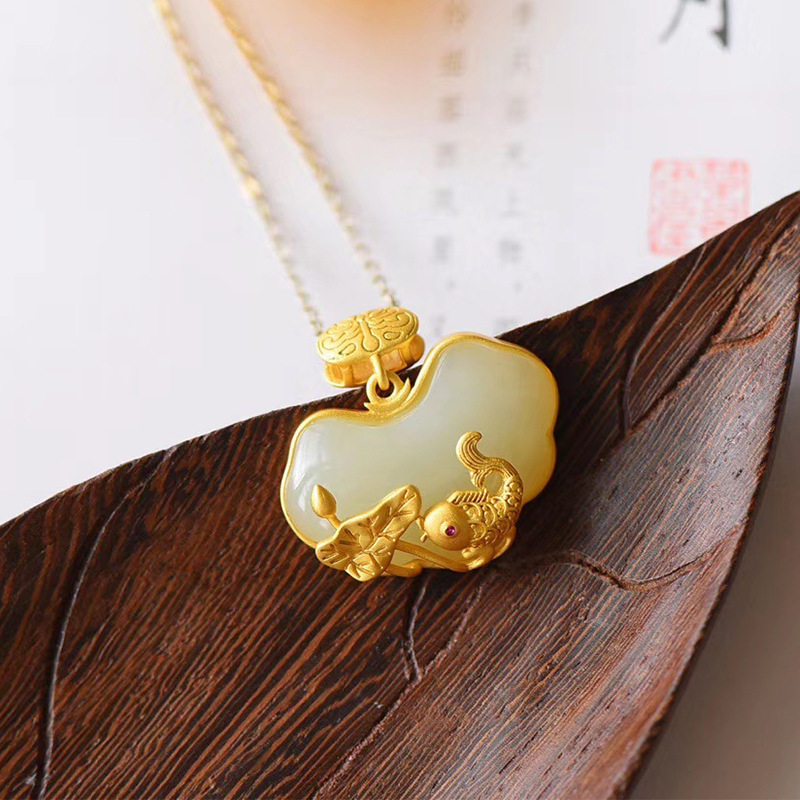 天然和田玉鯉蓮ペンダント女性レトロアクセサリー年魚和田玉s925銀ネックレス女性モデル