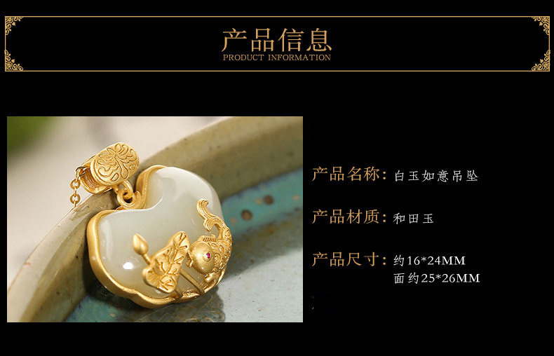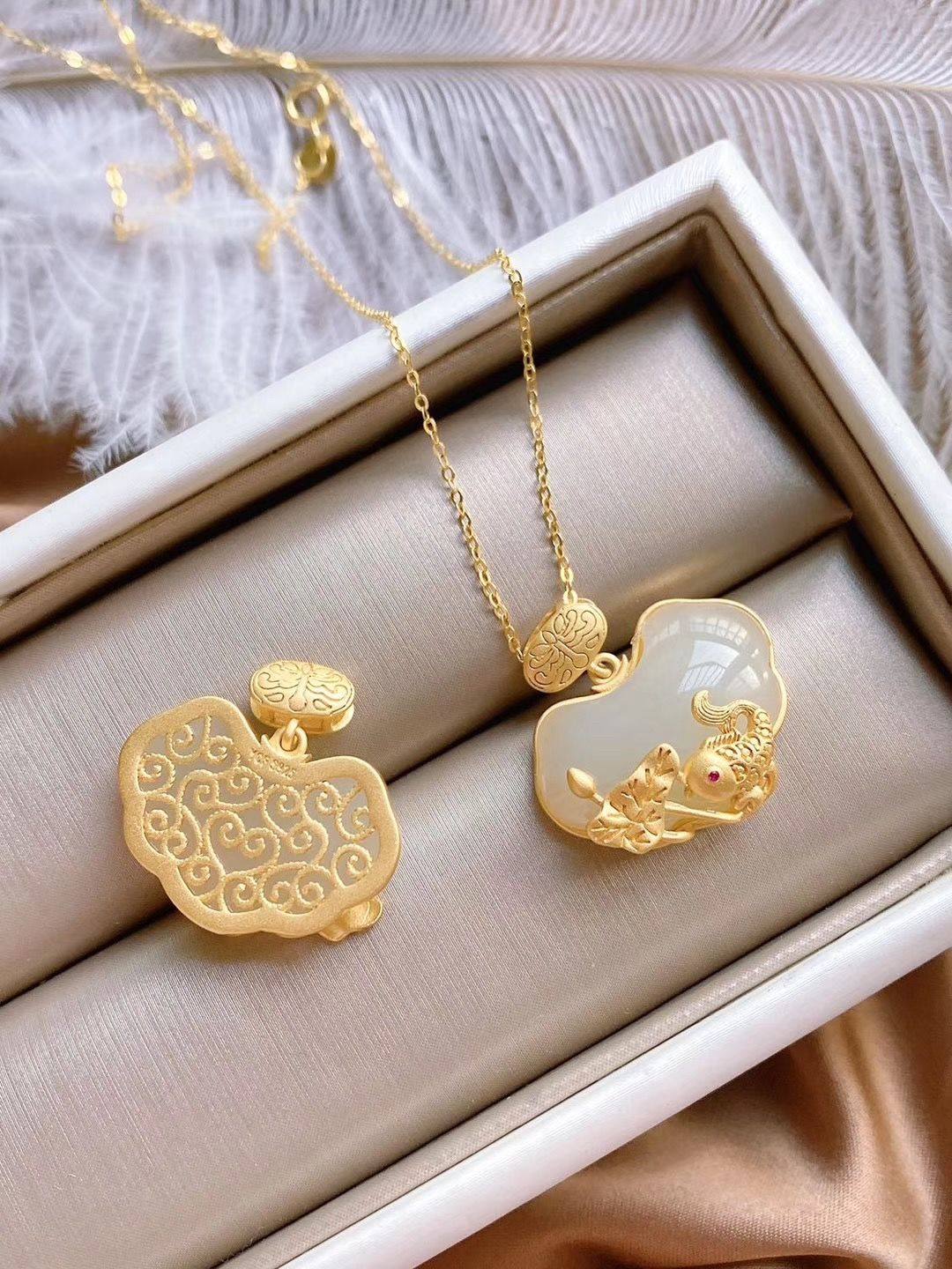 和田玉指輪s925純銀金メッキ玉納福ペンダント両用オリジナルデザイン食指指輪