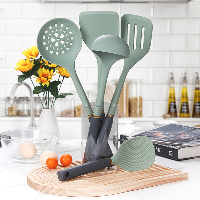 新型シリカゲル調理器具セット調理シャベルスプーンは鍋専用シャベルステンレス柄シャベルスプーン調理器具8点セット