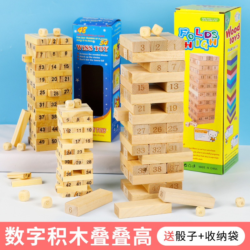 子供の知育玩具 4-6 早期教育木製ラバーウッドジェンガレジャーデスクトップ親子デジタルスタッキングビルディングブロック