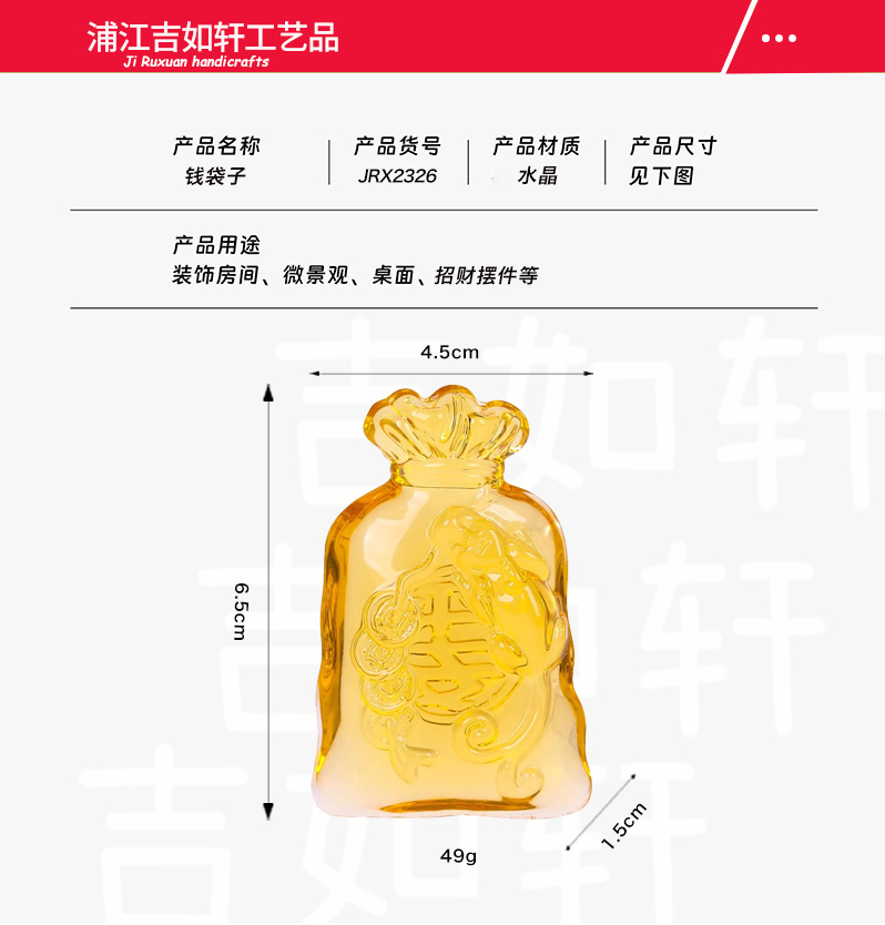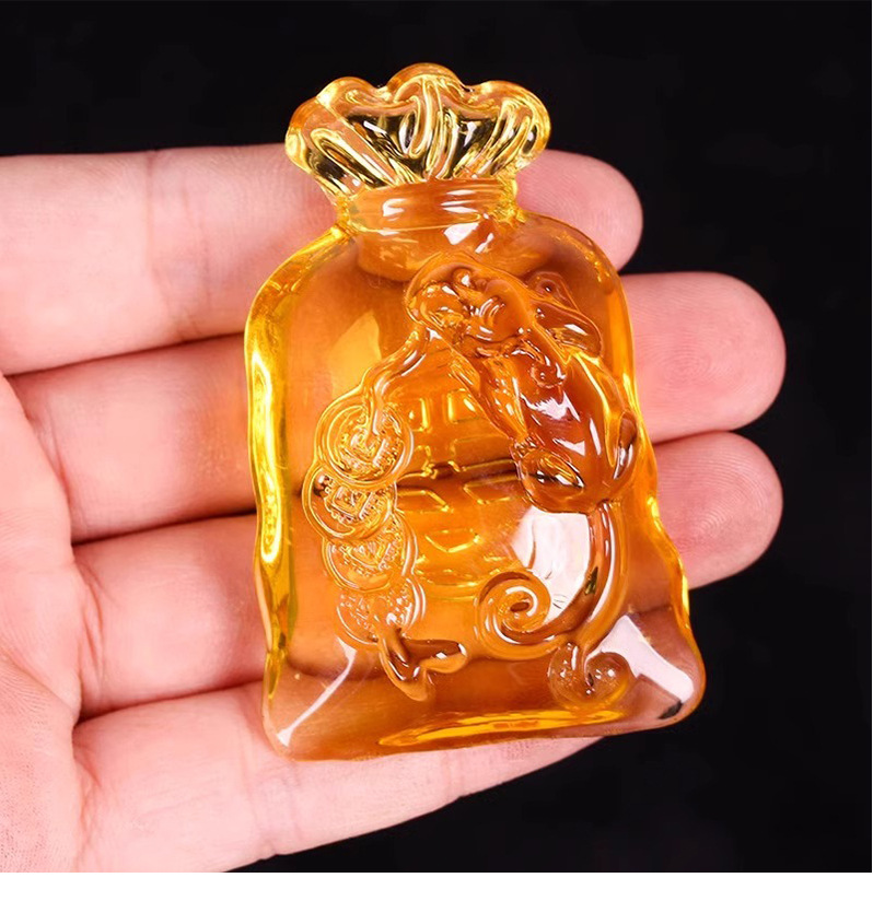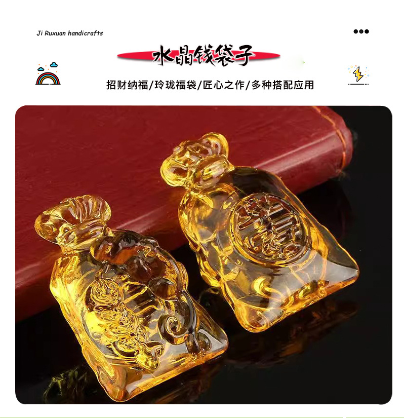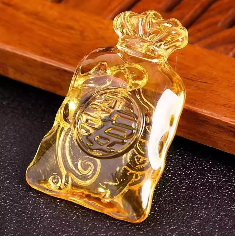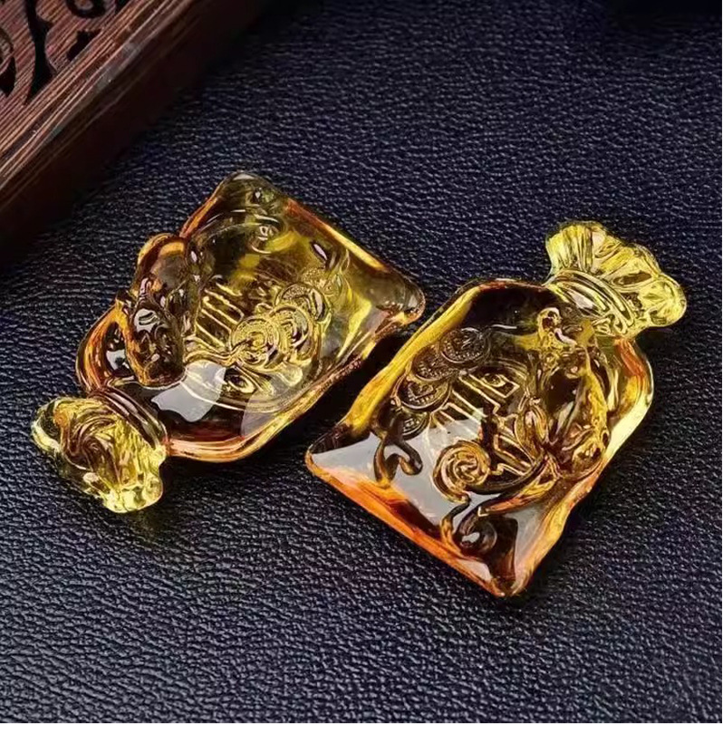 ガラスの福袋、お金の袋の装飾品、平和の意味、富と幸運を呼び込む、縁起の良い贈り物、家の装飾、シトリンのお金の袋