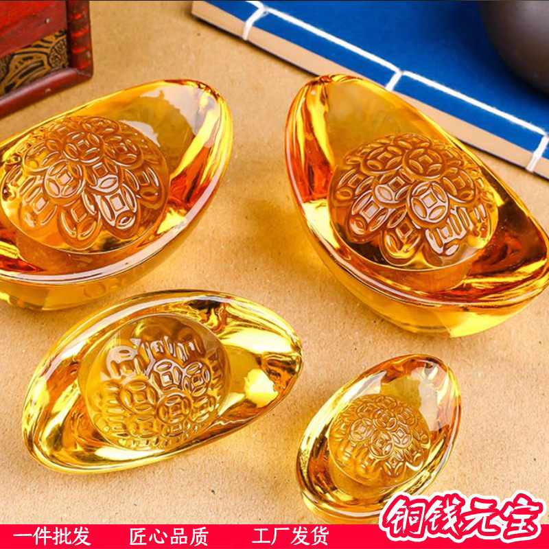 ガラス製の宝箱、元宝の置物、家のデスクトップ工芸品、装飾、開店祝いの贈り物、黄水晶の宝箱